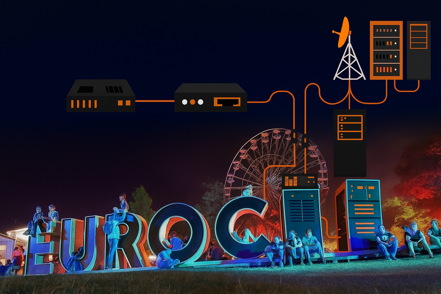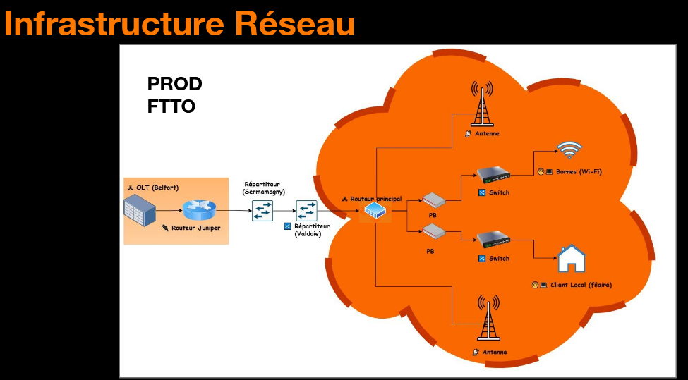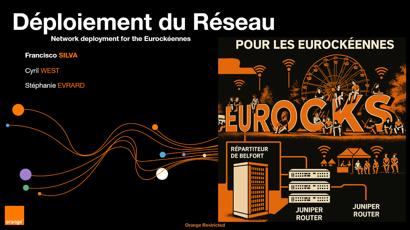 Dans le cadre de mon stage de fin d’année chez Orange France, au sein de l’UCI Est à Belfort, j’ai participé à un projet majeur : le déploiement de l’infrastructure réseau du festival des Eurockéennes. Il s’agissait de mettre en place un réseau temporaire, fiable et performant, capable de supporter les besoins en connectivité d’un événement accueillant plusieurs dizaines de milliers de personnes.